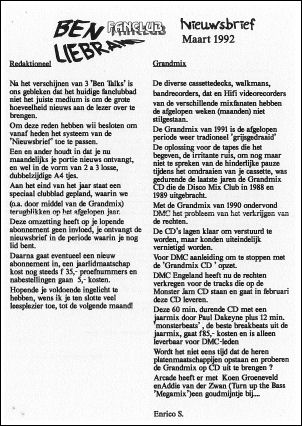 Ben Liebrand Fanclub Nieuwsbrief Maart 1992