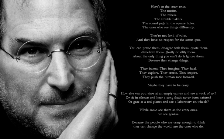 De ‘ode aan Steve Jobs’ bevat de tekst uit een commercial van Apple uit 1997. Oorspronkelijk werd de tekst door Steve Jobs zelf ingesproken, maar zijn stem is later vervangen door een zwaardere. De volledige tekst – in de commercial wordt een kortere tekst uitgesproken – kun je op de afbeelding hieronder lezen. Deze tekst werd door Ben getypeerd als een boodschap die weergaf hoe Steve Jobs dacht.