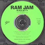 Ram Jam - Black Betty (Promo) Type: 5 Inch CD-single Label: CBS Epic (DISP 000559/ESK 73195) Land: USA Tracklisting: 1. Black Betty (Rough 'N Ready Remix-Edit) / 3:12 * 2. Black Betty (Rough 'N Ready Remix) / 5:28 * 3. Black Betty (Original Version) / 3:56 * Remix by Ben Liebrand |