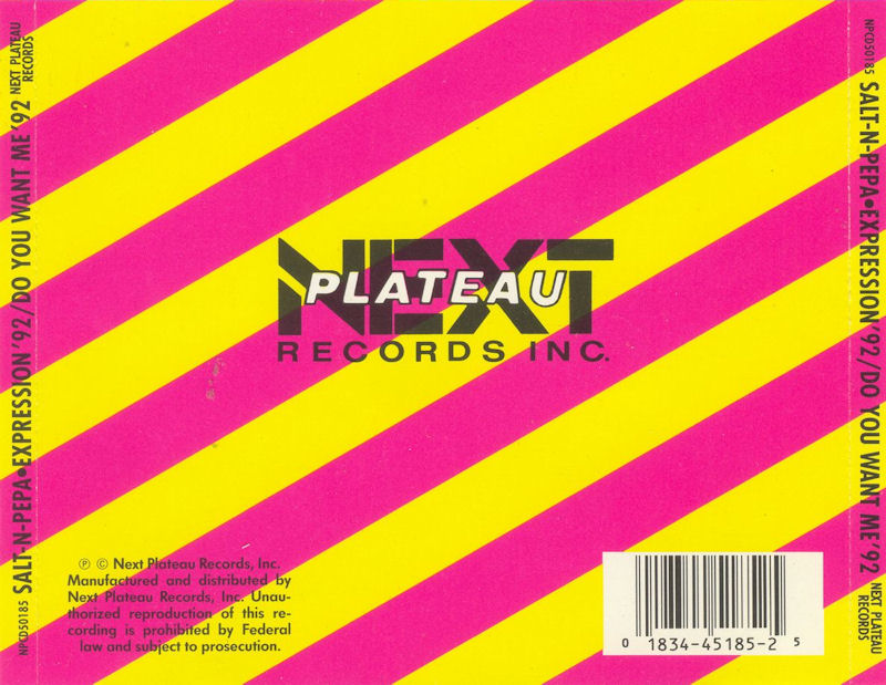 Salt 'N' Pepa - Expression '92/Do You Want Me '92 (promo) Type: 5 Inch CD-single (USA) Label: Next Plateau Records (NPCD50185) Tracklisting: 1. Expression '92 (Hard Ecu Radio) / 3:58 2. Expression '92 (Hard Ecu Club) / 6:17 3. Do You Want Me '92 (Radio) / 3:45 4. Do You Want Me '92 (Club) / 5:35 5. The Essential Hit Combo / 5:01 (features: Do You Want Me, Let's Talk About Sex, Expression and You Showed Me) All tracks: additional production and remix by Ben Liebrand. scan achterzijde |