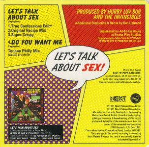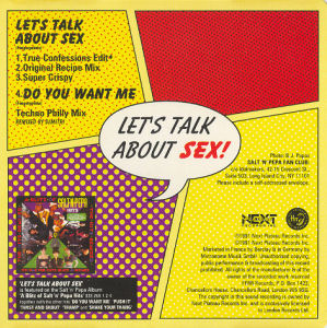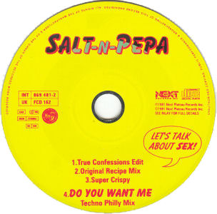 Salt 'N' Pepa - Let's Talk About Sex Van deze cd-singles bestaan twee versies. Ze komen overeen wat betreft inhoud, maar voor- en binnenkant van de hoes verschillen, evenals de vormgeving van de cd-single. Hieronder een overzicht van de verschillen: CD-single Versie 1: