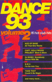 Dance 93 Volume 2 - 16 Hot Club Hits Type: MC Label: Possum Records (PDC 111) Kant A: 01. Dance 2 Trance - P.ower Of A.merican N.atives 02. Ace Of Base - All That She Wants 03. Abigail - Losing My Religion 04. Def Dames Dope - It's OK, All Right 05. Dimples D & Lady Spice - Sisters Keep On Doin' It * 06. DJ Bobo - Somebody Dance With Me 07. Family Of Music - C'mon Get Up 08. Nomad - (I Wanna Give You) Devotion (Commission 1993 Dub) Kant B: 01. Captain Hollywood Project - More & More 02. Abigail - Constant Craving 03. Technotronic - Move This 04. Bizarre Inc. feat. Yvonne Yanney - Love In Motion 05. G.T.O. - Listen To The Rhythm Flow 06. S'Witch - I Want Your Love 07. S.W.V. - I'm So Into You 08. Take That - Could It Be Magic * Written by B. Liebrand/E. Boovenkamp/A. Anderson/H. Mancini; Produced by Ben Liebrand |
