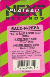 Salt-N-Pepa - Let's Talk About Sex Type: MC (Cassette Single) Label: Next Plateau Records/FFRR (300150-4) Kant A: 1. Let's Talk About Sex (True Confessions Edit) / ?:?? * 2. Let's Talk About Sex (Super Crispy Mix) / ?:?? Kant B: 1. Let's Talk About Sex (True Confessions Edit) / ?:?? * 2. Let's Talk About Sex (Super Crispy Mix) / ?:?? * Additional production & remix by Ben Liebrand |
