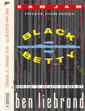 Ram Jam - Black Betty (Ben Liebrand 12" Remixes) Type: MC (Cassette Single) Label: CBS Epic (655430 4) Land: UK Kant A: 1. Black Betty (Rough 'N Ready Remix) / 5:28 * 2. Black Betty (Original Version) / 3:56 3. Black Betty (Rough 'N Ready Remix - Edit) / 3:12 * Kant B: 1. Black Betty (Rough 'N Ready Remix) / 5:28 * 2. Black Betty (Original Version) / 3:56 3. Black Betty (Rough 'N Ready Remix - Edit) / 3:12 * * Remix by Ben Liebrand |